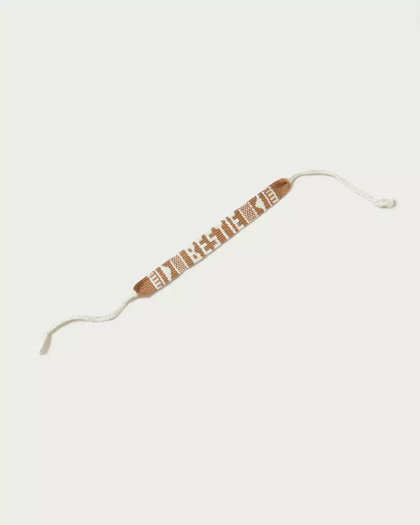 Camel brown and cream-colored hand-knotted bracelet made by Mayan Hands in an LR-exclusive “Bestie” design. A founding member of the Fair Trade Federation, Mayan Hands employs women artisans in Guatemala to handmake these beautiful bracelets.