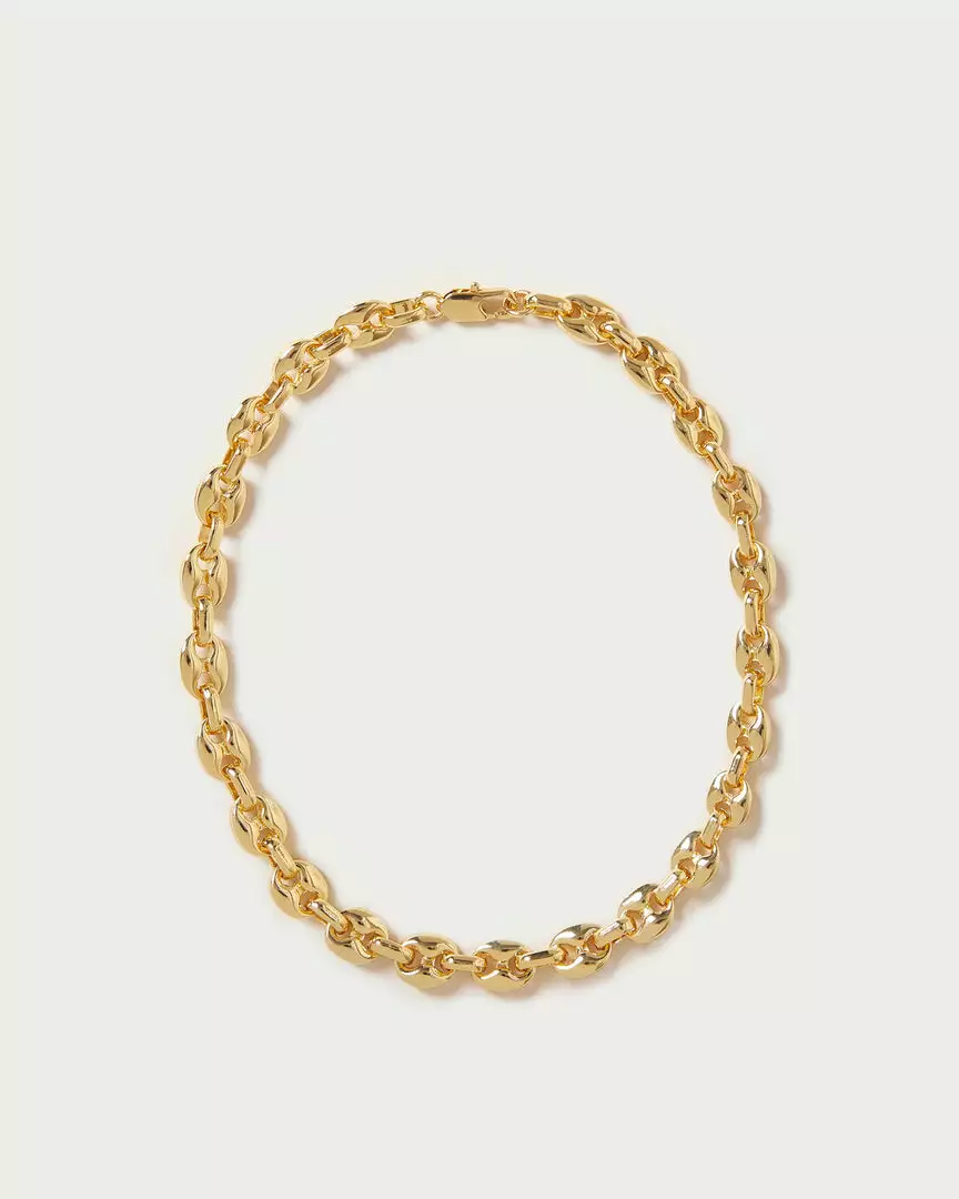 Mariner chain link necklace in gold-plated brass with lobster clasp closure.