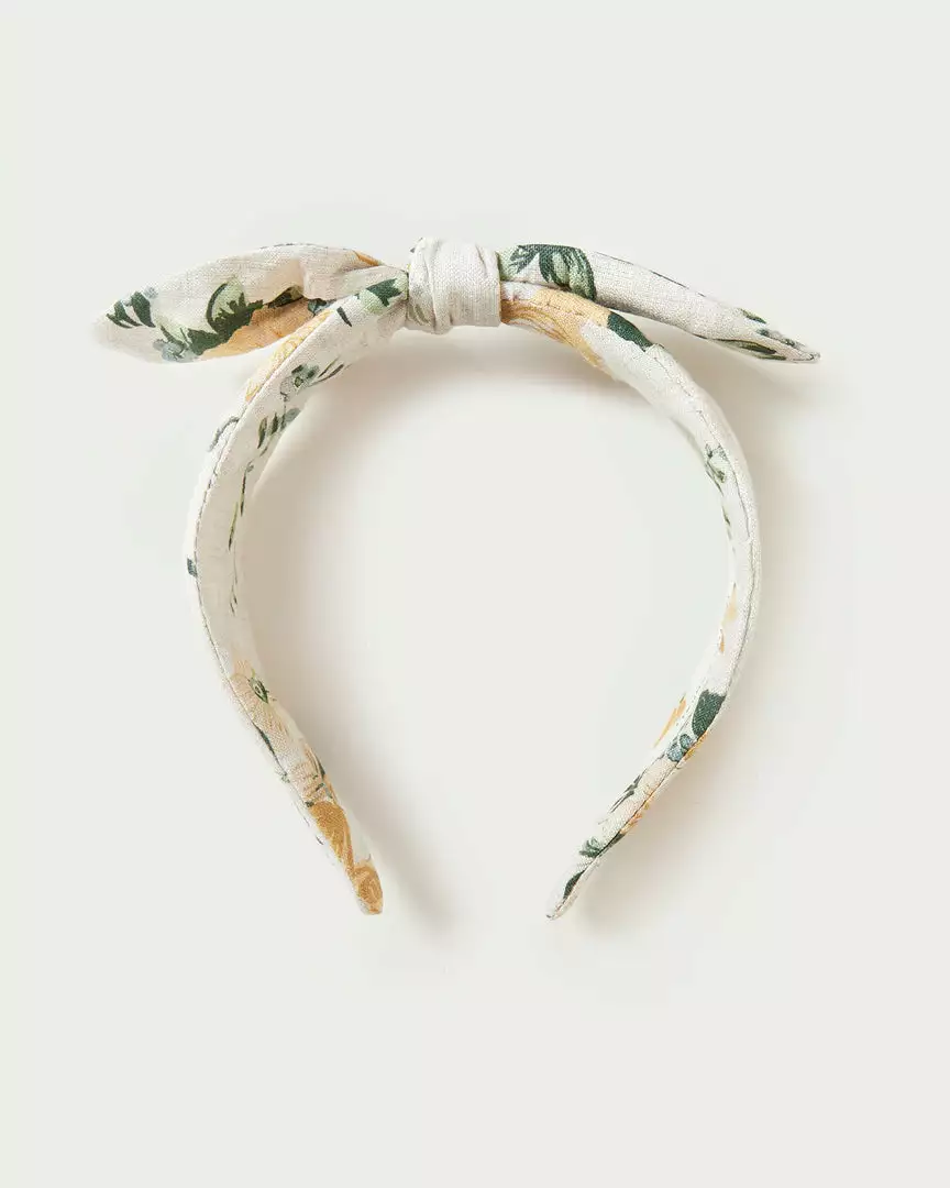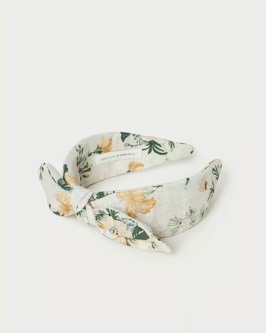 Wide knotted bow headband in nova floral print linen.