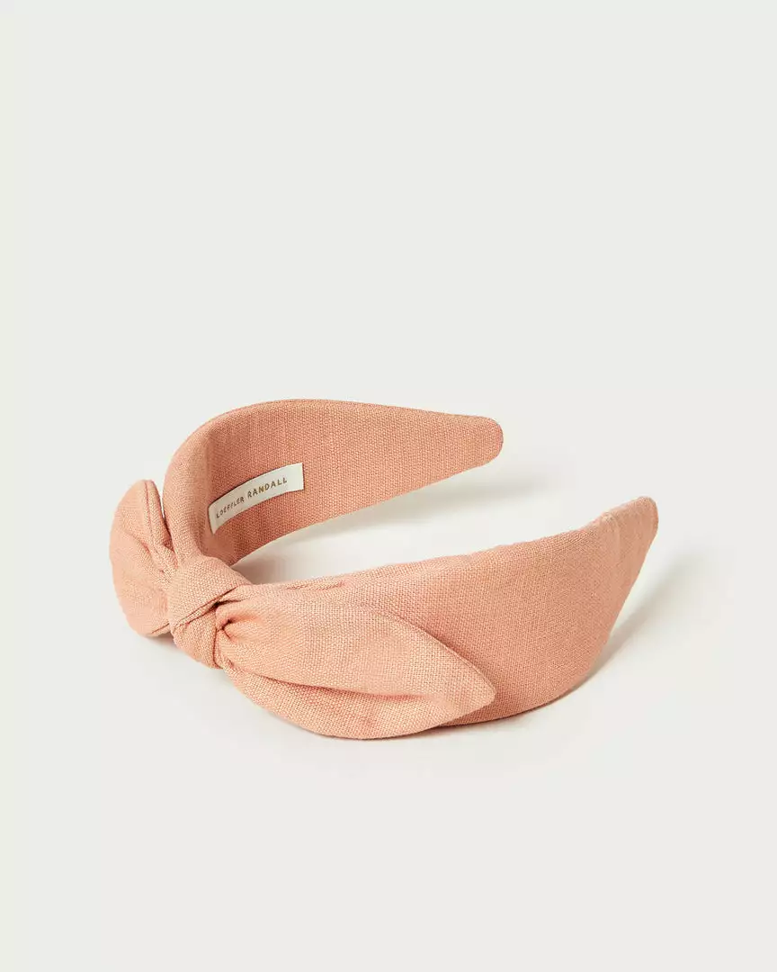 Wide knotted bow headband in blush pink canvas fabric.
