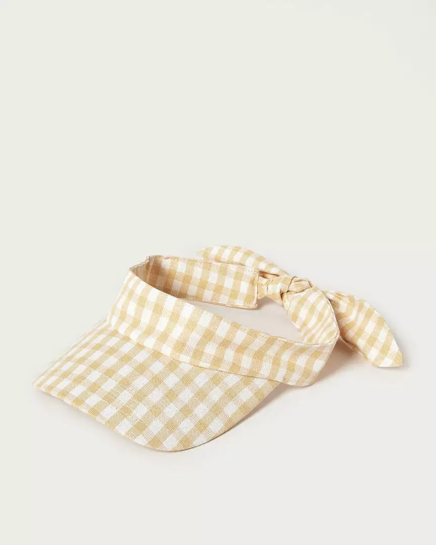 Sun visor in pale yellow and cream gingham canvas fabric.